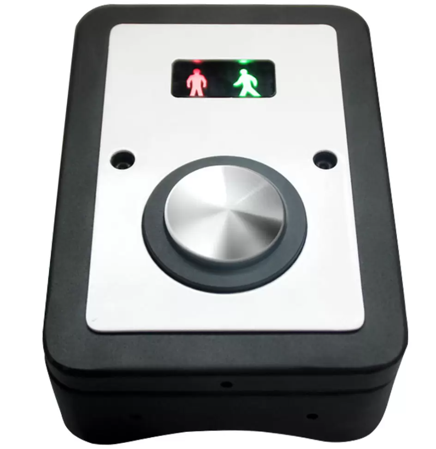 This device enables pedestrians to trigger a crossing request when needed, reducing unnecessary waiting time at intersections. By operating on-demand rather than fixed timing alone, it helps improve overall pedestrian flow efficiency.